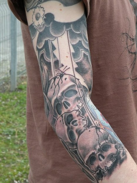 Tatouage Homme Tete De Mort Old School Sur Avant Bras Tatouage Homme Tete De Mort Avant Bras