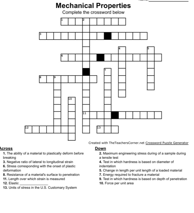 Solved Mechanical Properties Complete The Crossword Below Chegg Com