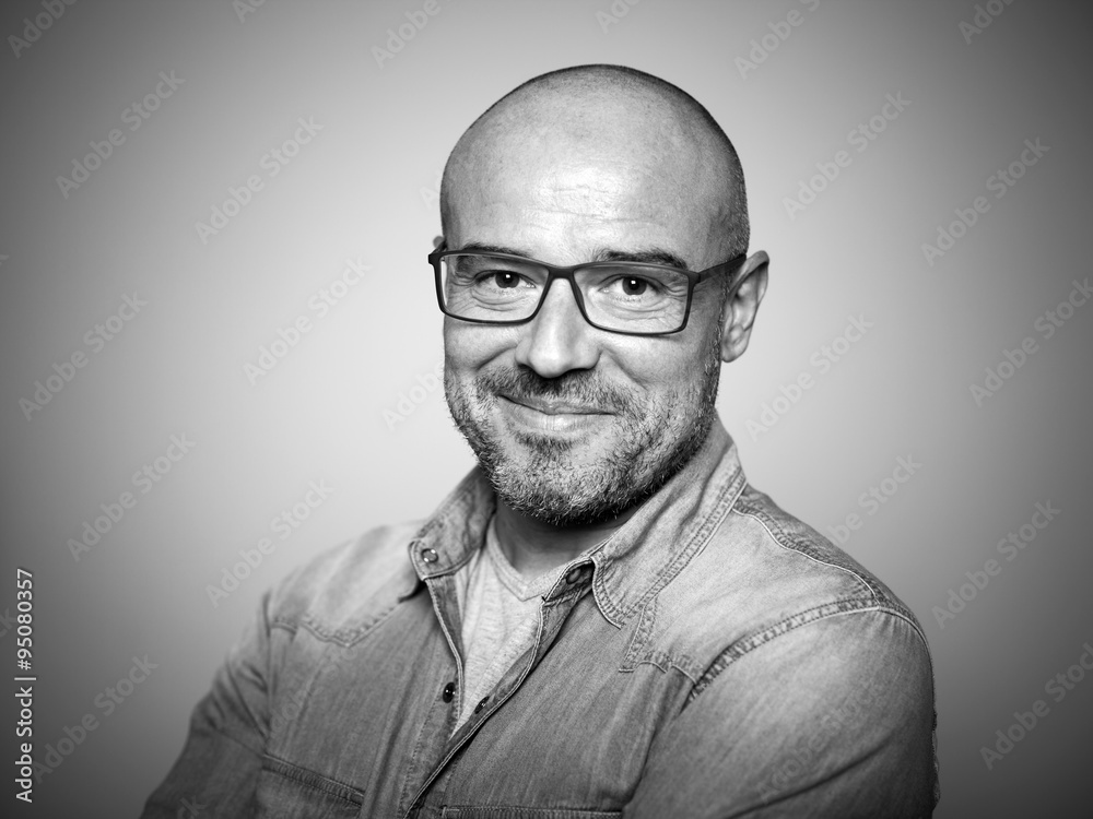 Hombre De Cuarenta Anos Calvo Y Con Gafas Sonriendo Wall Mural Wallpaper Murals Ricardoferrando