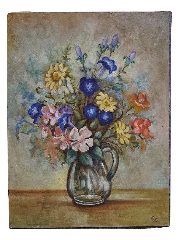 Quadro Tela Pintura a Óleo Flores Por Acir Fressato - interdomino