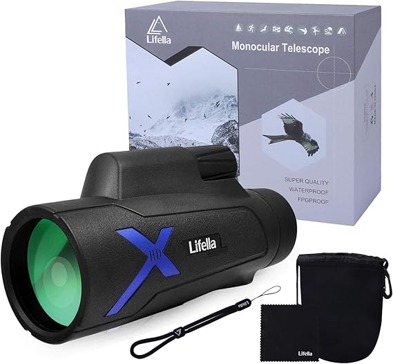 Amazon.com : Lifella High Definition Monocular Telescope, 12X50 High Power Waterproof Monocular, BAK4 Prism FMC for Wildlife Bird Watching, Hunting, Climbing, Birdwatching, Camping, Travelling : Camera & Photo