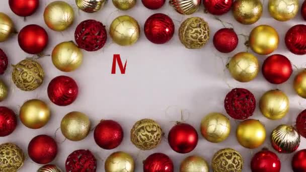 Feliz Texto Natal Escrever Cercado Ouro Ornamentos Natal Vermelho Parar — Vídeo de Stock © pivarabibip@gmail.com #422669886