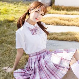 Korean School Uniform Girls Jk Cosplay Suit For Women Japanese School Uniform Japones Cotton White Shirt Plaid Straps Skirt Wish